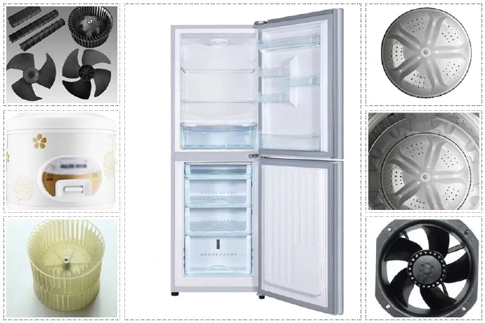 1. Glass fiber reinforced modified PP: glass fiber is added to PP raw materials, which is used to make axial fans and cross-flow fans in refrigerators, air conditioners and other refrigeration machines